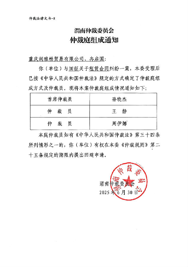 重慶潤雅柏貿(mào)易有限公司、冉啟國與田征租賃合同糾紛案公告
