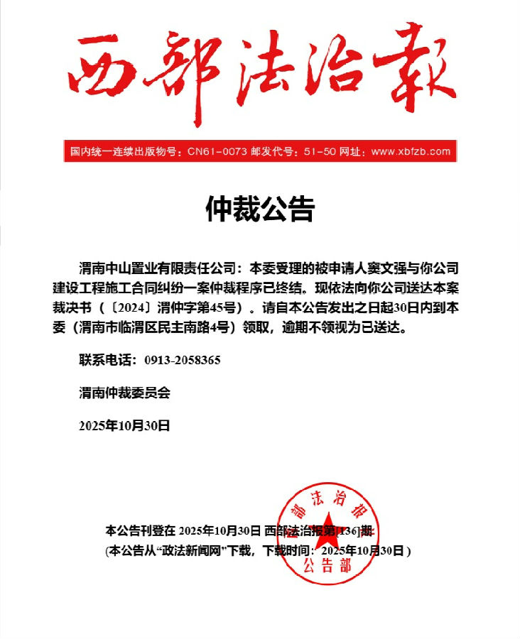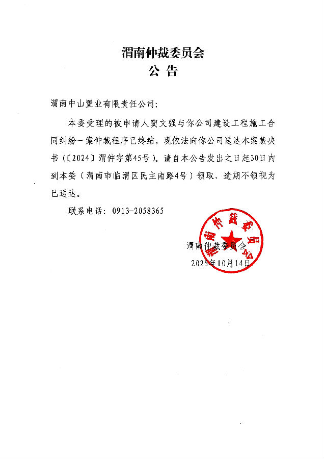 渭南中山置業(yè)有限責任公司與竇文強建設(shè)工程施工合同糾紛案公告